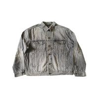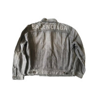 Back logo washed distressed denim jacket