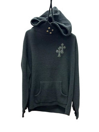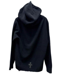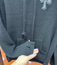 Cashmere leather cross patch waffle knit silver hoodie