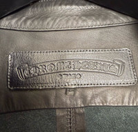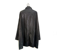 Leather cross patch leather button up shirt jacket