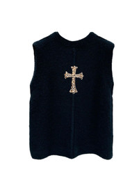 Leopard pony hair cross patch cashmere vest
