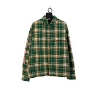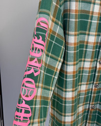 Pink letter sleeve green lined flannel jacket