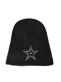 Star patch mohair double layer beanie