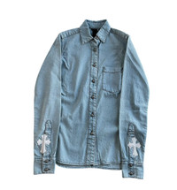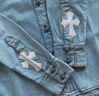White leather cross patch denim jacket