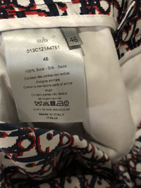 Size 46. Made with silk. Super nice. Belt loops at waistband. Sold out everywhere Retail 1300 dollars+tax Feel free to ask for more info