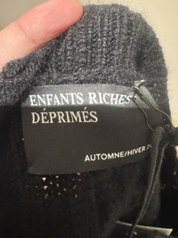 Brand new M ASYMMETRICAL 5-BUTTON CARDIGAN IN LORO PIANA CASHMERE. WIDE DROP-SHOULDER BOXY FIT. CABLE KNIT AT BACK. RIB KNIT AT FRONT, NECKLINE, HEM, AND CUFFS. LOGO-BRANDED METAL BUTTONS WITH ANTIQUE FINISH. DROP STITCH DISTRESSING THROUGHOUT.