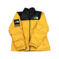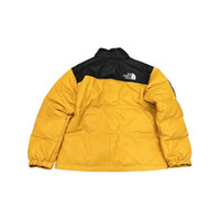 Yellow leather nuptse puffer jacket