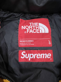 Size L. Probably the best north face supreme jacket ever. Flaw shown on pic 3. Can probably be repaired not obvious when worn