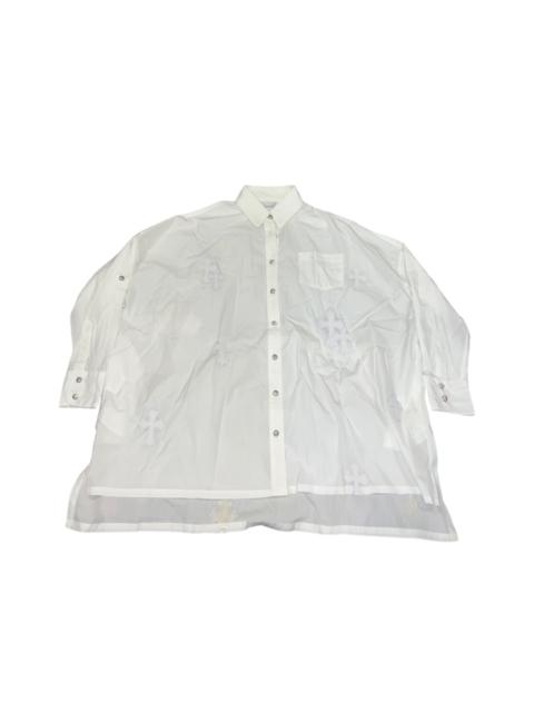 Mahal Kita white leather cross patch button up shirt