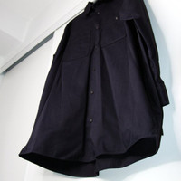 BNWT AW19 ACNE STUDIOS OVERSIZED NAVY SHIRT JACKET 46 SIZE 46 (FITS VERY OVERSIZED, MORE LIKE 52), MADE IN ROMANIA. BRAND NEW WITH TAGS. Acne Studios dark navy oversized cotton twill shirt detailed with a combination of faux horn and ring snap button closure. Details Two chest patch pockets Faux horn and snap button closure Technical cotton twill construction Style id: FN-MN-SHIR000114 Shell: 65% Polyester, 35% Cotton