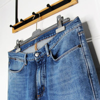 BNWT AW22 ACNE STUDIOS MAX MID BLUE SLIM FIT JEANS 34 SIZE 34, MADE IN ITALY. BRAND NEW WITH STORE TAG. Acne Studios mid blue slim fit jeans feature a 5-pocket construction with a low waist, straight leg and long length. The Max jeans are crafted from comfort stretch denim made of organically grown cotton. Comfort stretch Low waist Slim fit Straight leg Long length Zip fly Style ID: Max Mid Blue Main material: 98% organic cotton, 2% elastane