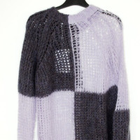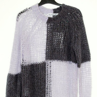 BNWT AW24 ACNE STUDIOS MOHAIR CROCHET SWEATER XXS SIZE XXS (FITS OVERSIZED, CAN FIT A MEN'S MEDIUM), MADE IN ITALY. BRAND NEW WITH TAGS. ▪ Multicolor ▪ Purple/grey ▪ Open crochet knit ▪ Crewneck ▪ Raglan sleeves ▪ Ribbed hem and cuffs ▪ Oversized fit Composition: 23% Acrylic 22% Nylon 20% Mohair 20% Wool 15% Viscose