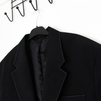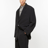 BNWT AW24 ACNE STUDIOS OVERSIZED BLAZER JACKET 52 SIZE 52, MADE IN BULGARIA. BRAND NEW WITH TAGS. We are delighted to present the quintessence of elegance and minimalism – the single-breasted jacket from Acne Studios. This refined wardrobe piece is designed for those who appreciate classic yet contemporary elegance. Its dominant black hue, combined with a straightforward cut, renders this jacket exceptionally versatile, suitable for a variety of occasions. Crafted from a blend of high-quality polyester and wool, this jacket not only offers a magnificent appearance but also durability and wearing comfort. An additional charm is provided by contrastive, white stitching on the lapels and pockets, lending it a distinctive character. The minimalist single-button closure and elegantly stitched cuffs highlight the attention to detail that is characteristic of Acne Studios' designs. The jacket's narrow lapel and the absence of a back vent are features that align with modern trends in men's fashion while still retaining elements of formal classicism. The subtle designer logo, visible on the cuff, adds an exclusive touch and speaks to the brand's prestige. Composition / Capacity 55% Polyester 45% Wool