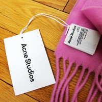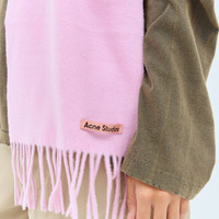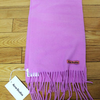 BNWT AW24 ACNE STUDIOS SKINNY FRINGE WOOL SCARF PINK