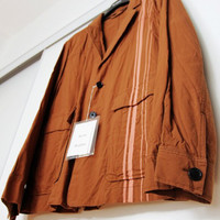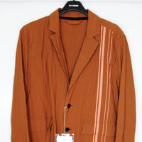 BNWT SS19 ACNE STUDIOS RACING STRIPE BLAZER 50 SIZE 50, MADE IN LITHUANIA. BRAND NEW WITH TAGS. Since 1996, Acne Studios have offered staple pieces for a laid-back contemporary wardrobe, such as this brown and ginger orange cotton Racing stripe blazer. Featuring a notched collar, a front button fastening, long sleeves, button cuffs, front flap pockets, a straight hem and a wrinkled style. Composition Lining: Cotton 100% Outer: Cotton 100%