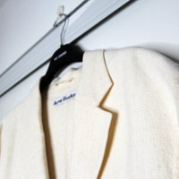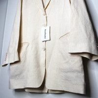 BNWT SS21 ACNE STUDIOS OVERSIZED RAMIE JACKET 38 SIZE 38 (WOMEN'S COLLECTION, FITS SUPER OVERSIZED, MORE LIKE A MEN'S XL OR EU52), MADE IN PORTUGAL. BRAND NEW WITH TAGS. Jonny Johansson’s fascination with structure and form is expressed through the oversized proportions of Acne Studios’ ivory single-breasted suit jacket. It’s crafted from textured ramie with notched lapels, jetted pockets and a hem vent which accentuates the relaxed drape. Team it with a patterned top, the coordinating shorts and slides to mimic the label’s Scandinavian verve. 100% ramie. Lining: 100% cotton