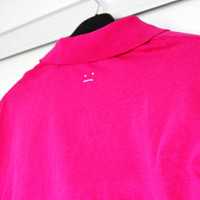 MINOR DEFECT TINY HOLE ON THE BACK NECK DUE TO THE SECURITY TAG. BNWT SS22 ACNE STUDIOS FACE MOTIF POLO SHIRT M SIZE M, MADE IN PORTUGAL. BRAND NEW WITH STORE TAG. Acne Studios brings grunge back to life by applying subtle fading to iconic pieces. The Swedish label's polo exudes distinguished, yet casual style. In the spirit of minimalist elegance and effortless sophistication, the Face logo is displayed as a discrete accent on the chest on this relaxed fit. Luxurious 100% cotton weave Oversized fit, drop shoulders Two-button polo collar Face emblem on the chest Composition 100% cotton
