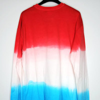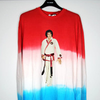 BNWT AW19 ALCHEMIST "GRACELAND" KARATE ELVIS TSHIRT L SIZE L, MADE IN ITALY. BRAND NEW WITH TAGS. Alchemist's long-sleeve T-shirt is crafted of red, white, and blue tie-dyed cotton jersey detailed with rolled raw-edge cuffs and hem. Appliquéd with a Chase The Sun patch, this piece features a multicolored Elvis graphic printed at the chest. From the Graceland Collection. Rib-knit crewneck. Drop shoulders. Long sleeves. Raw-edge cuffs and hem. Pulls over. 100% cotton. Rib-knit: 95% cotton, 5% elastane. Chest 22.05 in 56 cm Length 31.1 in 79 cm Shoulders 22.83 in 58 cm Sleeve Length 28.74 in 73 cm