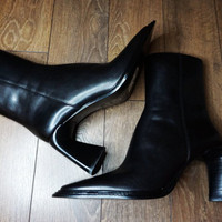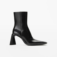BNWT AW22 ALEXANDER WANG BOOKER 85 ANKLE BOOT 39.5 SIZE 39.5 (US WOMEN'S SIZE 9.5), MADE IN CHINA. BRAND NEW WITH ORIGINAL BOX. black ankle boot with pointed toes and iconic triangular leather stacked mid-heel · Square toe · Zip closure at inner side · Rubber injection at block heel · Leather sole · Heel: H3.25 in