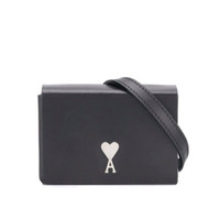 MINOR DEFECT SMALL SCRATCH AS THE LAST PICTURE SHOWN BNWT AW20 AMI MINI BOX BAG RIVET LOGO ONE SIZE, MADE IN PORTUGAL. BRAND NEW WITH TAGS. Small black pouch AMI PARIS in calf leather. Detachable shoulder strap. Logo plate on the front, magnetic closure. ONE inner compartment. Embossed logo and rectangular shape. 11CM X 7CM X 3CM
