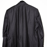 BNWT AW23 AMI PINSTRIPE BLAZER JACKET 52 SIZE 52, MADE IN ROMANIA. BRAND NEW WITH TAGS. AMI Paris channels a refined essence into this grey blazer. It is cut from virgin wool to an immaculate single-breasted silhouette detailed with a pinstripe pattern, enhancing the formal quality. It is fitted with three pockets, buttoned-cuff sleeves and English rear vents. grey/white virgin wool pinstripe pattern notched lapels front button fastening long sleeves buttoned cuffs chest welt pocket slip pockets to the sides multiple internal jetted pockets English rear vents full lining Composition Wool 100%