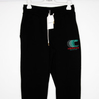 BNWT AW21 CASABLANCA GRAND PRIX SWEATPANTS L SIZE L, MADE IN PORTUGAL. BRAND NEW WITH TAGS. Straight-leg French terry organic cotton sweatpants in black featuring embroidered graphic logo in green and red. Body: 100% organic cotton. Lining: 100% polyester. WAIST WITHOUT STRETCHING: 76CM STRETCHED 90CM