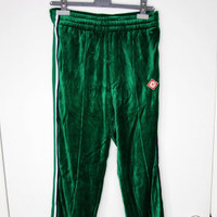 BNWT AW24 CASABLANCA VELOUR JOGGERS SWEATPANTS S SIZE S, MADE IN PORTUGAL. BRAND NEW WITH TAGS. forest green velour elasticated waistband with internal drawstring side stripe detailing raised seam detail two side zip-fastening pockets embroidered logo at the leg embroidered logo to the rear rear welt pocket straight leg Composition Outer: Polyester 100%, Cotton 40%, Modal 40%, Polyamide 20% Lining: Cotton 100% WAIST WITHOUT STRETCHING 70CM STRETCHED 82CM MATCHING JACKET IS AVAILABLE. Waist 27.56 in 70 cm Inseam 32.68 in 83 cm Leg Opening 8.66 in 22 cm Front Rise 12.99 in 33 cm Thigh 11.02 in 28 cm