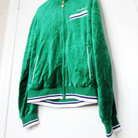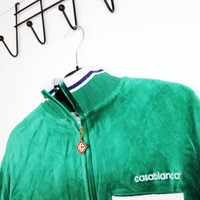 BNWT AW24 CASABLANCA VELOUR TRACK JACKET S SIZE S, MADE IN PORTUGAL. BRAND NEW WITH TAGS. forest green velour front zip fastening branded zip puller high neck embroidered logo at the chest chest welt pocket side stripe detailing long sleeves ribbed cuffs and hem two side welt pockets mesh lining straight hem Composition Outer: Polyester 100%, Organic Cotton 95%, Modal 40%, Polyamide 20%, Elastane 5% Lining: Cotton 100% MATCHING PANTS ARE AVAILABLE. Chest 20.08 in 51 cm Length 24.02 in 61 cm Shoulders 18.11 in 46 cm Sleeve Length 25.2 in 64 cm