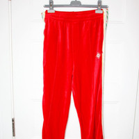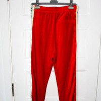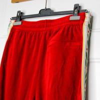 BNWT SS23 CASABLANCA VELOUR LAUREL TRACK PANTS XL SIZE XL, MADE IN PORTUGAL. BRAND NEW WITH TAGS. The Laurel Velour Track Pants are a louche staple for a sporting wardrobe. The red velour trousers are completed with our signature laurel knitted satin tape detailing running down the side. Made from a cotton blend, the pants are designed to sit high on the waist with a drawstring fastening and gently fall straight at the foot. Velour cotton blend fabric 40% cotton 40% modal cotton 20% nylon WAIST WITHOUT STRETCHING, 78CM STRETCHED, 98CM MATCHING JACKET IS AVAILABLE.