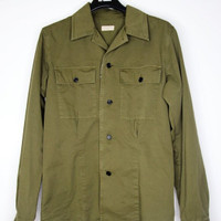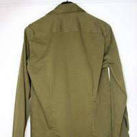 BNWT SS20 DRIES VAN NOTEN CAVENDISH KHAKI SHIRT 48 SIZE 48, MADE IN HUNGARY. BRAND NEW WITH STORE TAG. The khaki shirt"Cavendish" by Dries van Noten is tailored with dividing seams on the front and back. It has a short lapel collar and two buttoned flap pockets on the chest. - Rounded hemline - Buttoned cuffs - Material: 100% cotton