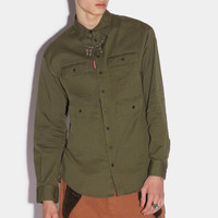 BNWT AW22 DSQUARED2 DROP SHOULDER SHIRT 50 SIZE 50, MADE IN ITALY. BRAND NEW WITH TAGS. THE DROP SHOULDER SHIRT IS THE PERFECT CALLBACK TO THE MILITARY TREND OF THE 90S. MADE FROM A ONE-TONE MATERIAL, THIS SHIRT BY DSQUARED2 IS A CLASSIC BASIC THAT PAIRS WELL WITH ANYTHING. WEAR WITH SOME STATEMENT TROUSERS AND SUBTLE JEWELLERY FOR AN EFFORTLESS LOOK. STRETCH COTTON SHIRT REGULAR FIT CLASSIC COLLAR FRONT FLAP POCKETS BUTTONED CUFFS BUTTON CLOSURE FRONT LOGO TAG 97% COTTON, 3% ELASTANE-SPANDEX Chest 22.83 in 58 cm Length 31.89 in 81 cm Shoulders 22.05 in 56 cm Sleeve Length 25.59 in 65 cm