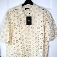 BNWT SS23 EGONLAB "WONDERLAND" SUMMER SHIRT XL SIZE XL, MADE IN EUROPE. BRAND NEW WITH TAGS. Semi-sheer plain-woven nylon- and cotton-blend shirt. Floral broderie anglaise detailing throughout. · Open spread collar · Button closure · Patch pocket at chest 74% polyamide, 26% cotton. Chest 25.98 in 66 cm Length 30.71 in 78 cm Shoulders 22.44 in 57 cm Sleeve Length 12.2 in 31 cm