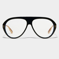 BNWT AW24 GUCCI GOLDEN TEMPLES AVIATOR SUNGLASSES GG1515S ONE SIZE, MADE IN JAPAN. BRAND NEW WITH ORIGINAL CASE. GG1515S 004 This model's large frame exudes self-assured character and its retro appearance will be sure to turn heads this season. This luxurious accessory bears the prestigious Italian label's signature highly sought after by fashion connoisseurs around the world. Its clear lenses are held by a thick and brilliant acetate frame, and its golden temples bearing the label's iconic engravings complete the opulent look. Acetate frame Clear lenses Contrasting gold temples Eye width: 61 mm Bridge: 13 mm Temple: 145 mm Composition Acetate, golden metal