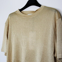 BNWT AW23 CMMN SWDN ARAMIS GLITTERING TSHIRT L SIZE L, MADE IN PORTUGAL. BRAND NEW WITH TAGS. The duo behind Cmmn Swdn easily plays with contrasts to elevate its pieces to absolute sophistication. This T-shirt's simple and casual style meets the refined glamour of a shimmering metallic finish. The result is an avant-garde and seductive top that will add a unique and scintillating fashion edge to your outfits when the weather gets chilly. Delicate knit jersey in a blend of viscose and metallic fibres Composition Main material 80% viscose 20% metallic fibres Chest 19.29 in 49 cm Length 28.35 in 72 cm Shoulders 18.9 in 48 cm Sleeve Length 8.66 in 22 cm