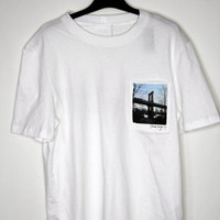 BNWT AW24 HELMUT LANG POSTCARD BROOKLYN BRIDGE TSHIRT M SIZE M, MADE IN PORTUGAL. BRAND NEW WITH TAGS. Lightweight crewneck tee in a relaxed fit, with photograph of the city taken by Helmut Lang’s Creative Director, Peter Do. Crewneck Short sleeves Photograph of the Brooklyn Bridge at front Composition: 100% cotton Chest 20.47 in 52 cm Length 28.35 in 72 cm Shoulders 18.5 in 47 cm Sleeve Length 9.84 in 25 cm