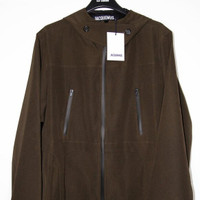 BNWT AW21 JACQUEMUS LE BLOUSON DRAIO JACKET 52 SIZE 52, MADE IN PORTUGAL. BRAND NEW WITH TAGS. Long sleeve stretch ripstop jacket in khaki. Detachable throat guard with button fastening at stand collar. Zip closure at front. Straps with D-rings at waist. Zippered pockets at chest and waist. Press-stud tab at cuffs. Viscose satin lining in black. Fully lined. Silver-tone, black, and tortoiseshell hardware. Part of the La Montagne collection. Body: 90% polyester, 10% elastane. Lining: 100% viscose.