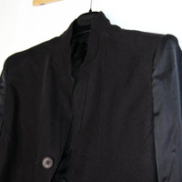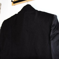 BNWT SS23 JULIUS "GALLU" DUAL MATERIAL CROPPED JACKET 3 SIZE 3 (FITS SMALL), MADE IN JAPAN. BRAND NEW WITH TAGS. The Japanese label known for its ultra-modern creations with refined streetwear influences turns heads thanks to its unique take on men's fashion trends. This black jacket from Julius's spring collection sets a standard of renewed elegance with its sleek and cropped fit, play on fabrics and textures, and flawless design. Cotton-blend twill, rayon-blend sleeves with a satiny finish Hidden button closure Structured shoulders Composition Fabric 1 61% cotton 39% cupro Fabric 2 58% rayon 38% nylon 4% polyurethane Lining 63% cupro 37% cotton