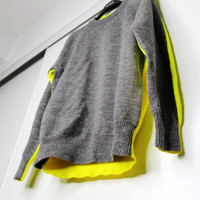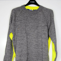 BNWT AW18 JUNYA WATANABE TWO TONE FLORESCENT SWEATER S SIZE S, MADE IN JAPAN. BRAND NEW WITH TAGS. Materials - 50% Wool / 50% Polyester Model: WB-N008-051-2-2 Grey and fluorescent yellow wool blend two-tone sweater from Junya Watanabe Comme Des Garçons Man featuring a round neck, long sleeves and a ribbed hem and cuffs. Far more classical than what we thought, Rei Kawakubo’s former protégé, Junya Watanabe creates for ‘Comme des Garçons Man’ basic lines with classic coats with a quilted effect, striped shirts and contrasted sole brogues to arouse men’s attention. Chest 19.68 in 50 cm Length 25.2 in 64 cm