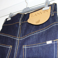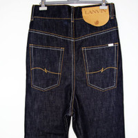 BNWT AW20 LANVIN DROP CROTCH JEANS 30 SIZE 30, MADE IN ITALY. BRAND NEW WITH TAGS. Drop it like it's hot. The crotch in your jeans that is. Lanvin has got you covered with this cotton pair, complete with cropped leg. Lanvin five-pocket jeans in dark-washed cotton denim with double contrasting stitching; cropped leg and drop crotch. Zip fly with branded button; "L" detail embroidered on the back pockets; one with metal logo tag Highlights blue cotton drop-crotch front button fastening belt loops classic five pockets cropped leg Composition Cotton 100%