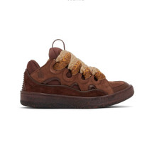 BNWT AW24 LANVIN CURB WITH SPECKLED EFFECT SOLE SNEAKERS 41 SIZE 41 (US 8), MADE IN PORTUGAL. BRAND NEW WITH ORIGINAL BOX. Low-top paneled nappa calfskin, suede, and mesh sneakers in brown. · Piping, cutouts, and rubberized trim throughout · Perforated detailing at toe · Lace-up closure · Logo plaque and pull-loop at padded tongue · Padded collar · Logo embossed at outer side · Jersey lining · Crepe rubber midsole · Treaded rubber sole Upper: calfskin, textile. Sole: rubber.