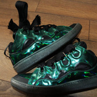 BNWT SS23 LANVIN CURB SNEAKERS GREEN 42 SIZE 42, MADE IN PORTUGAL. BRAND NEW WITH ORIGINAL BOX. Characterised by the signature oversized laces and tongue, this pair of Curb sneakers from Lanvin boasts a metallic panelled design. Composition Sole: Rubber 100% Outer: Rubber 100%, Fabric 100% Lining: Fabric 100%