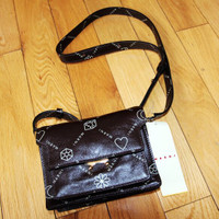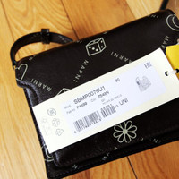 BNWT AW22 MARNI LOGO PRINTED TRUNK BAG ONE SIZE, MADE IN ITALY. BRAND NEW WITH TAGS. This small accessory with a big impact distills Italian label Marni's luxury and fashion prestige. This cross-body bag made from rich chestnut leather features the brand's signature Marnigram pattern. A blend of minimalist signatures and symbols in a diamond effect for an elegant and refined graphic grid. This model will be your go-to fashion choice on any occasion, adding a sophisticated touch to your looks every day. Luxurious, supple, and slightly glossy genuine leather with, twill cotton lining Flap with a metal closure Adjustable shoulder strap Two main compartments and one inner zippered pocket Patch pocket at the front and pocket at the back Height: 5" (12.5 cm) Length: 6.75" (17 cm) Depth: 5" (12.5 cm) Composition Main material 100% calf leather Lining 100% cotton Metallic parts Brass, steel