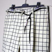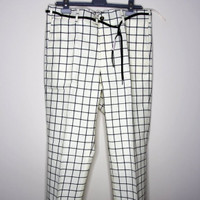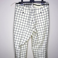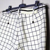 BNWT AW23 MARNI WOOL CHECK PANTS 50 SIZE 50, MADE IN ITALY. BRAND NEW WITH TAGS. A windowpane-check print lends a contemporary appeal to these stone-white Marni trousers, cut from virgin wool in Italy to a utiliarian-inspired relaxed straight leg. The pair fastens at th waist with a tie string adorned with a logo patch. cream white/navy blue virgin wool-cotton blend canvas windowpane print belt loops pressed crease front button and zip fastening detachable shoelace fastening waist two side slash pockets two rear button-fastening welt pockets straight leg Composition Lining: Cotton 69%, Polyamide 31% Outer: Virgin Wool 100%