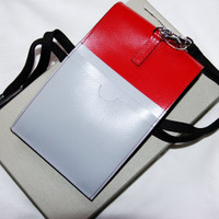 BNWT SS21 MARNI CELL PHONE SHOULDER BAG RED GRAY ONE SIZE, MADE IN ITALY. BRAND NEW WITH TAGS. An ultra lightweight bag by Marni for your phone and cards. Chic and understated, it will appeal to men looking for functionality and sophistication. Removable wrist strap with snap hook closure Slots for cards on the back Snap button clasp Made in Italy Height: 7" (18 cm) Width: 4" (10.5 cm) Depth: 1.25" (3 cm) Composition 100% leather, textile and other materials