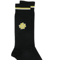 BNWT SS21 MARNI FLORAL INTARSIA KNIT SOCKS 44 SIZE 44, MADE IN ITALY. BRAND NEW WITH STORE TAG. Give your top drawer as much love and attention as the rest of your wardrobe with these Marni socks. Detailed with a floral motif to the side, they're a hard pair to miss. black/yellow/white cotton-blend round toe stretch-design knitted construction intarsia knit stripe trim Composition Cotton 90%, Polyamide 10%