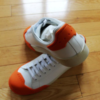 BNWT SS24 MARNI DADA BUMPER SNEAKERS 44 SIZE 44, MADE IN ITALY. BRAND NEW WITH ORIGINAL BOX. MARNI’s iconic low-top lace-up sneakers crafted in nappa leather. Characterized by an orange rubber detail on the toe and back heel. Finished with a leather lining, a soft leather insole, and a rubber sole. Made from: 100% Calf Leather