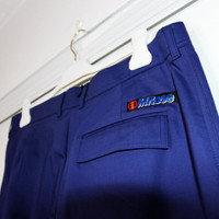 BNWT AW21 MARTINE ROSE NAVY CARGO PANTS XL SIZE XL, MADE IN ITALY. BRAND NEW WITH TAGS. These cool, revisited cargo pants are from the Martine Rose design house's Autumn-Winter 2021 collection. With a straight-leg cut enhanced with four cargo pockets, this slightly loose-fitting style is ideal for adding a touch of character to any wardrobe while playing the versatility card. An essential to wear with a cashmere jumper as well as a cotton T-shirt. Zip and button closure Belt loops Side welt pockets Flap pockets on the legs Logo label on the back 50% polyamide, 45% cotton, 5% elastane.