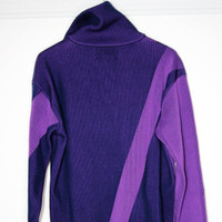BNWT AW21 MARTINE ROSE ZIPPED LOGO KNIT SWEATER S SIZE S, MADE IN ITALY. BRAND NEW WITH TAGS. Long sleeve rib knit cotton pullover colorblocked in tones of purple. Features jacquard knit logo in black at front. purple/lilac cotton intarsia knit logo print at the chest half front zip fastening long sleeves elasticated cuffs elasticated hem Composition Cotton 100%