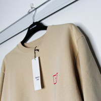 BNWT SS22 MARTINE ROSE CLASSIC CREW STONE SWEATSHIRT M SIZE M, MADE IN PORTUGAL. BRAND NEW WITH TAGS. shaped for a relaxed fit with ribbed edges, crew neck in stone and contrasting printed martine rose box logo. stone beige cotton logo print at the chest ribbed trim long sleeves straight hem composition 100% COTTON. MATCHING SHORTS AVAILABLE.