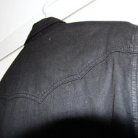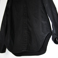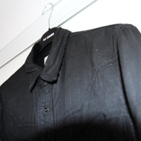 BNWT AW20 SIX WEEK RESIDENCY COATED WESTERN SHIRT M SIZE M, MADE IN CHINA. BRAND NEW WITH STORE TAG. A Western-style shirt in dark, slightly coated denim Pearly snap buttons with a metal rim Western yoke Two slit pockets at the front Ultra comfortable 100% cotton weave