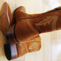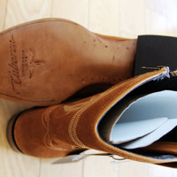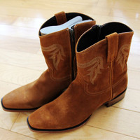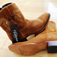 BNWT AW24 CABORCA CLEON GAMUZA WESTERN BOOTS AMBER 45 SIZE 45, MADE IN MEXICO. BRAND NEW WITH ORIGINAL BOX. Handcrafted using traditional Mexican craftsmanship and the best quality materials available, these ankle boots exude elegance and sophistication in every detail. The discreet tone-on-tone embroidery adds a special touch of refinement, maintaining the sobriety of the design. The side closure provides comfort, making them easy to put on without sacrificing aesthetics. Premium genuine suede upper Soft leather lining and footbed Inner-side zip closure Smooth leather outer sole Stacked leather heel with rubber insert for better grip Composition Upper Cow leather Lining Pigskin Outer sole Other materials